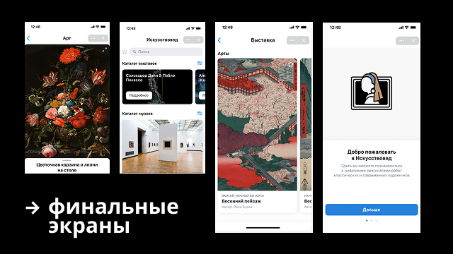 Разработать интерфейс мини-приложения "Искусствовед" — цифровые оригиналы работ классических и современных художников.